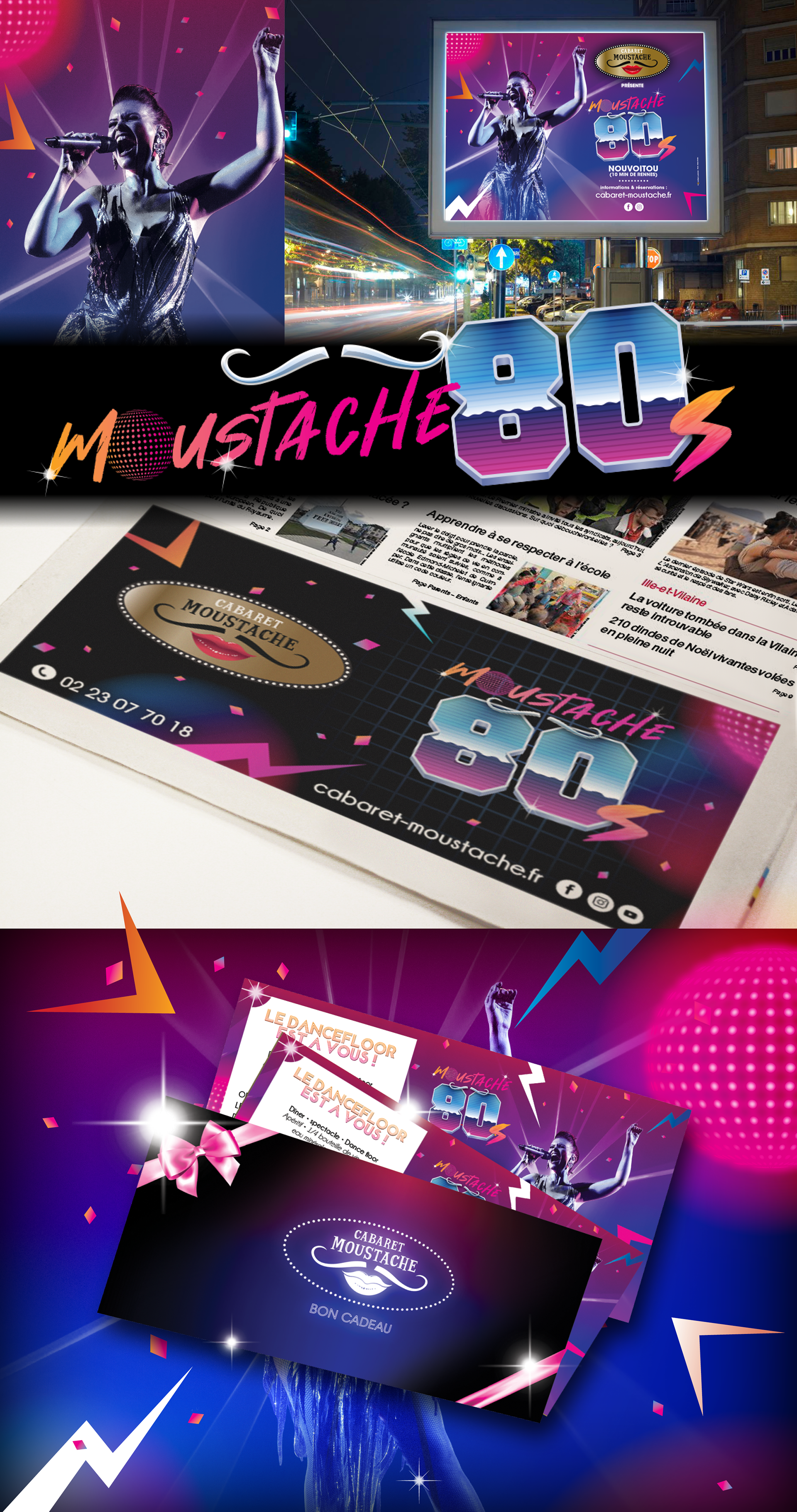 Création de l’identité visuelle des soirées 80's de ce Cabaret Breton ! • Mission : Identité visuelle + Déclinaisons print / digitales