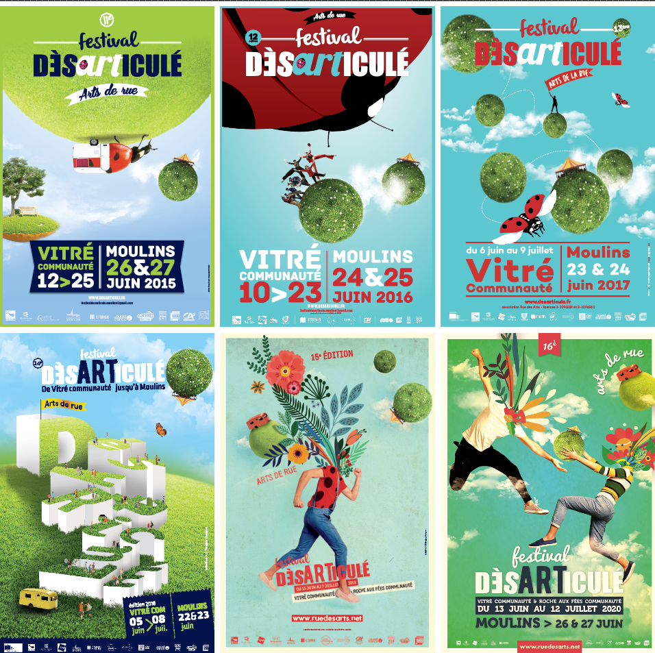Création de l'identité du Festival Désarticulé durant 6 éditions (de 2015 à 2020) !